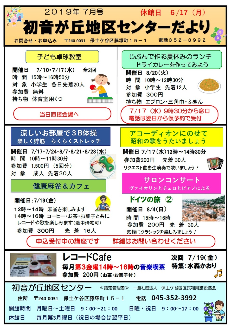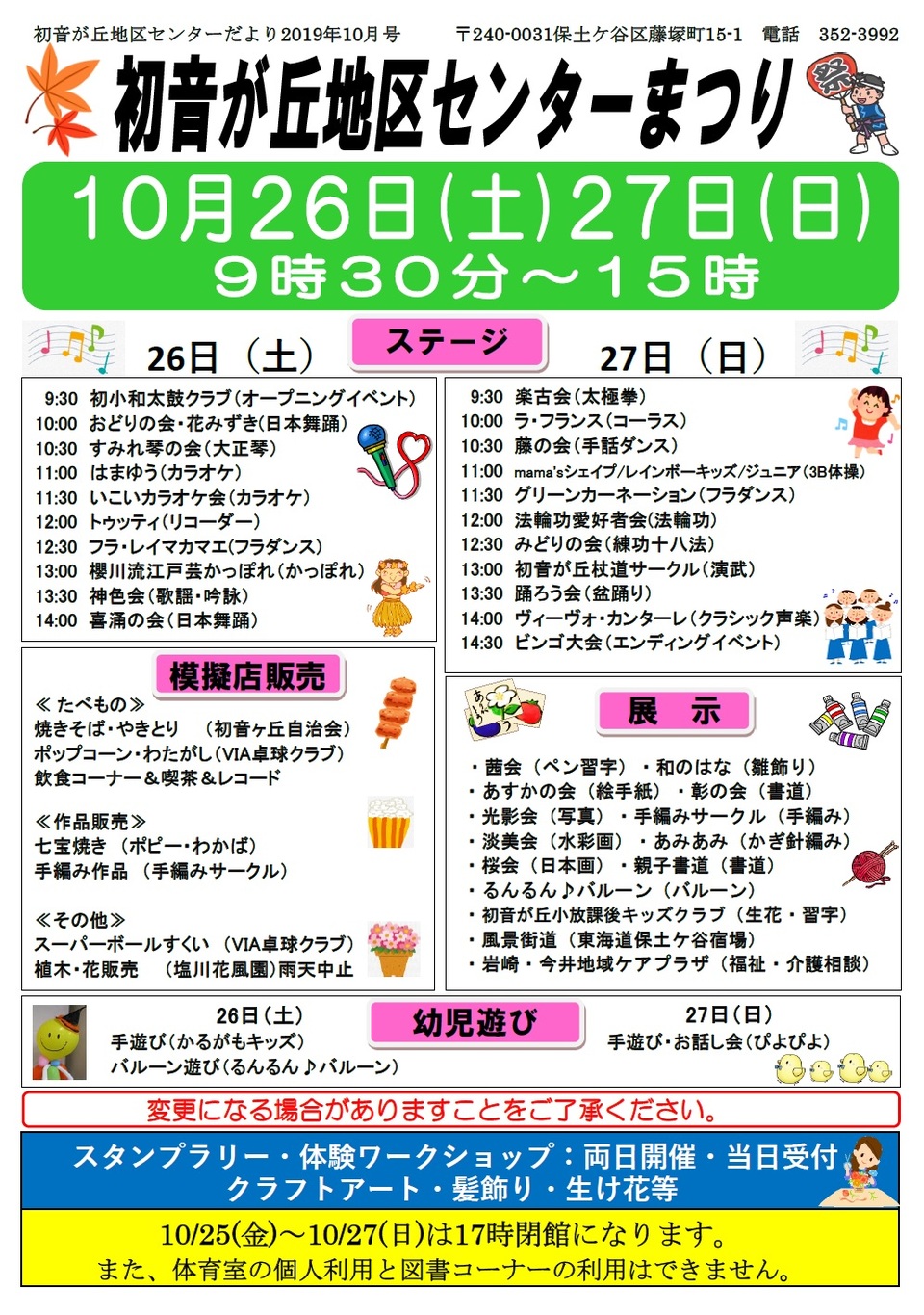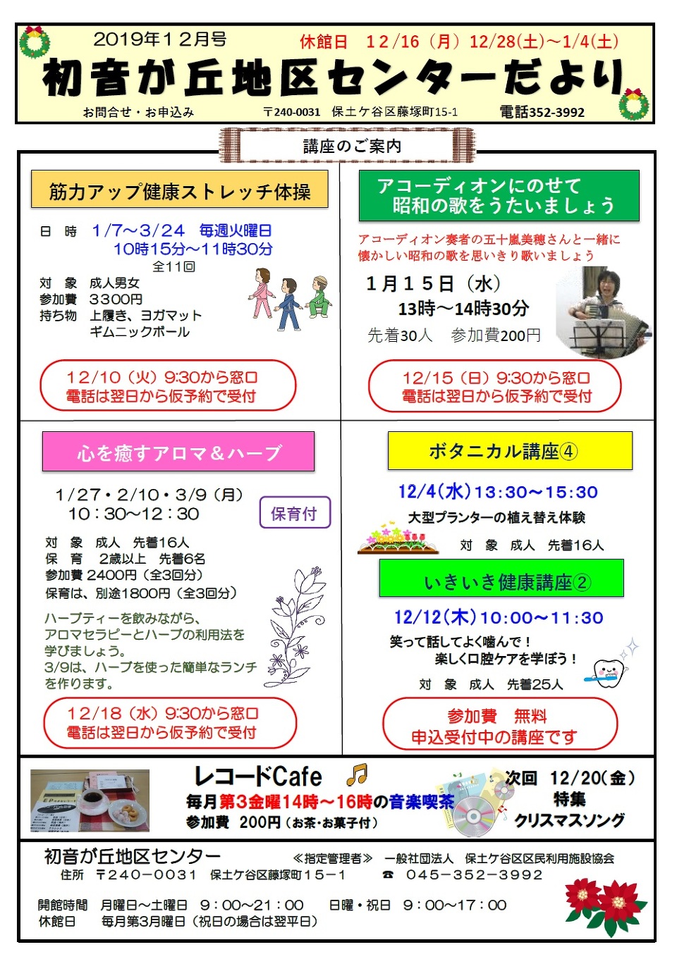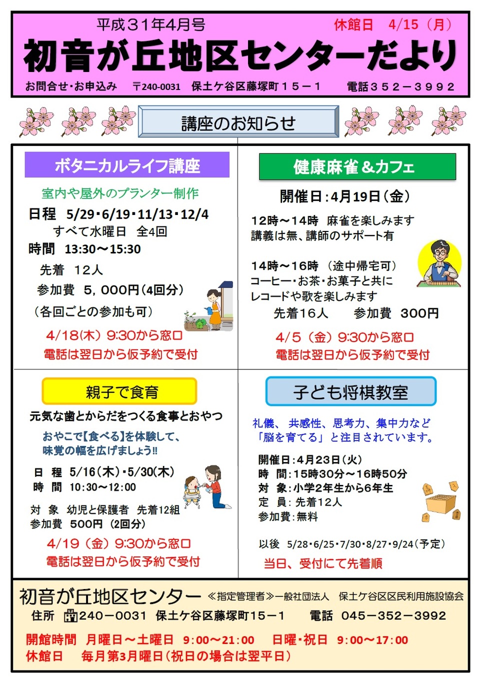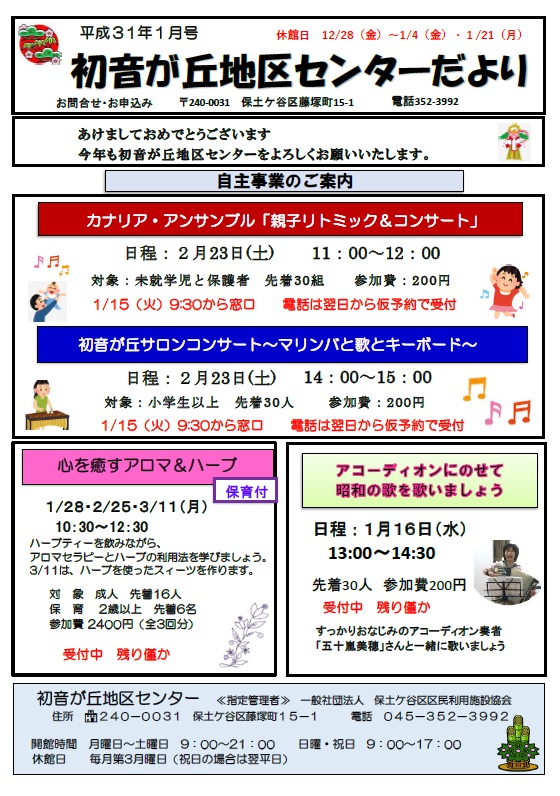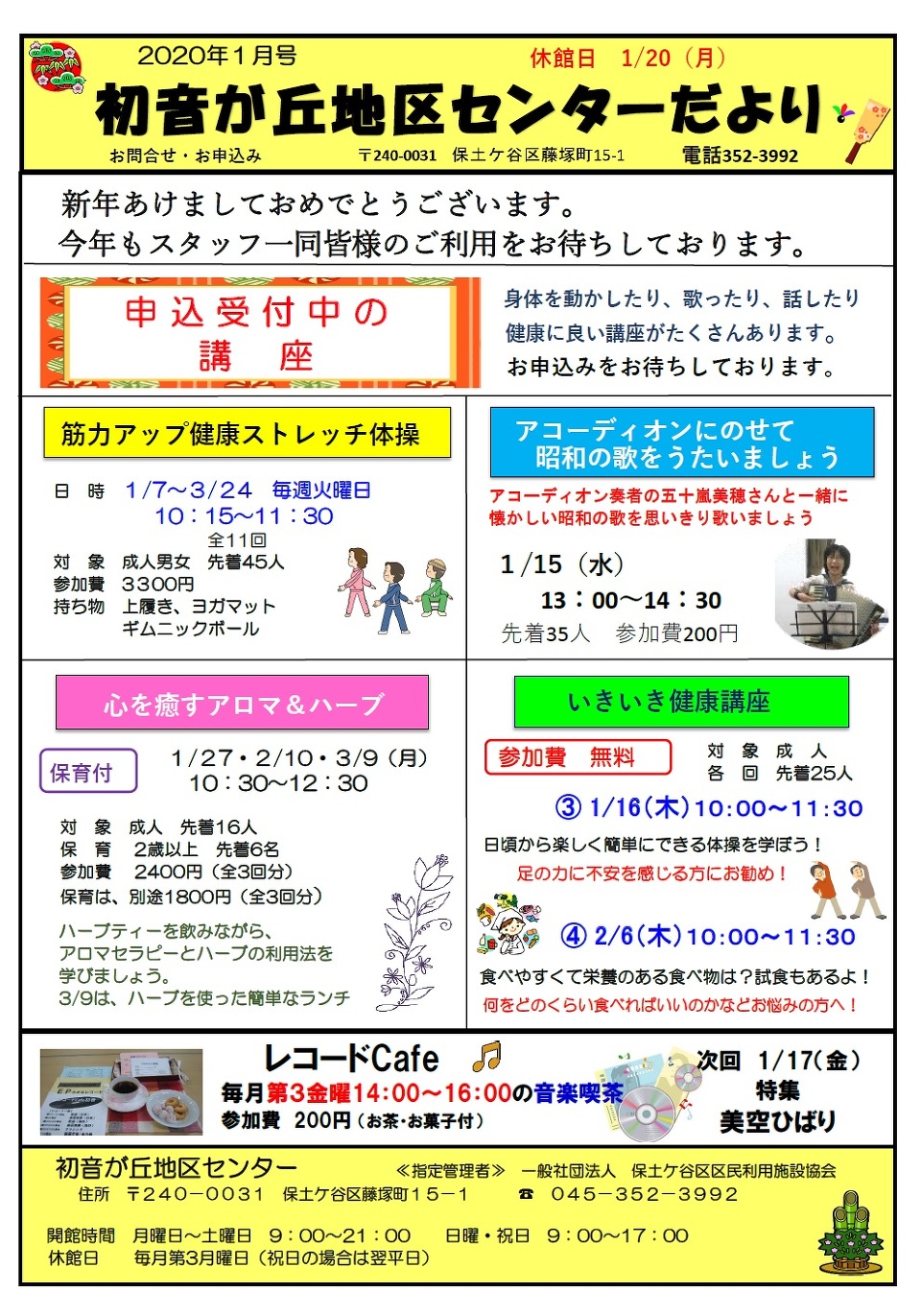 Copyright(C) 初音が丘地区センター All Rights Reserved.