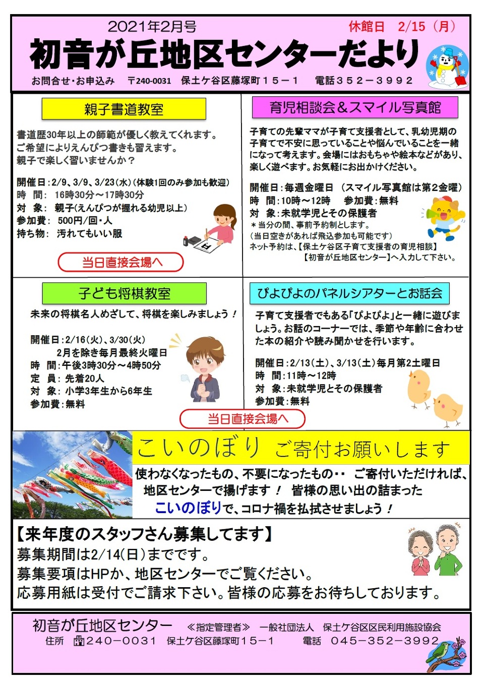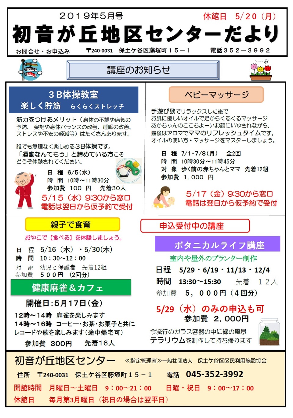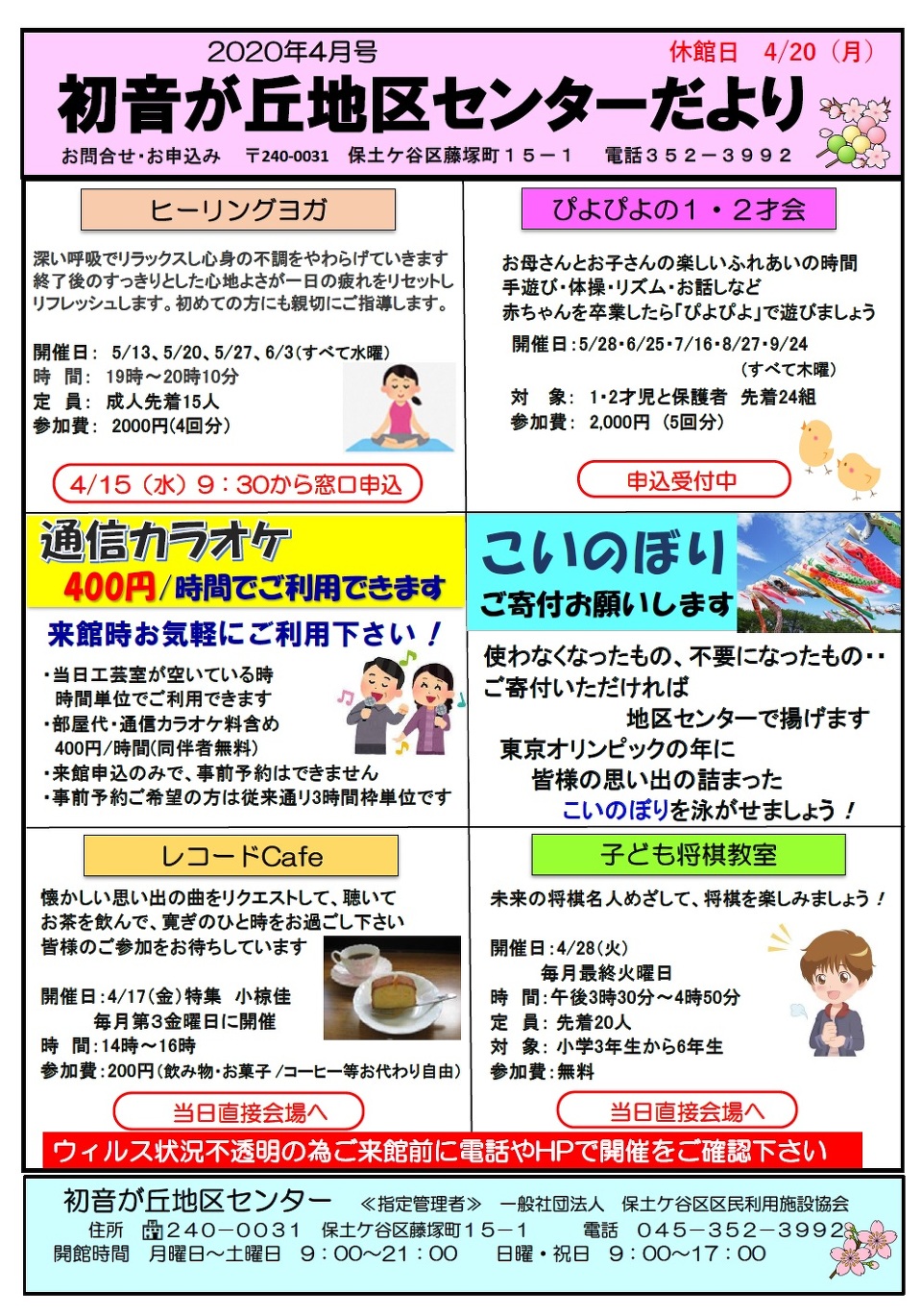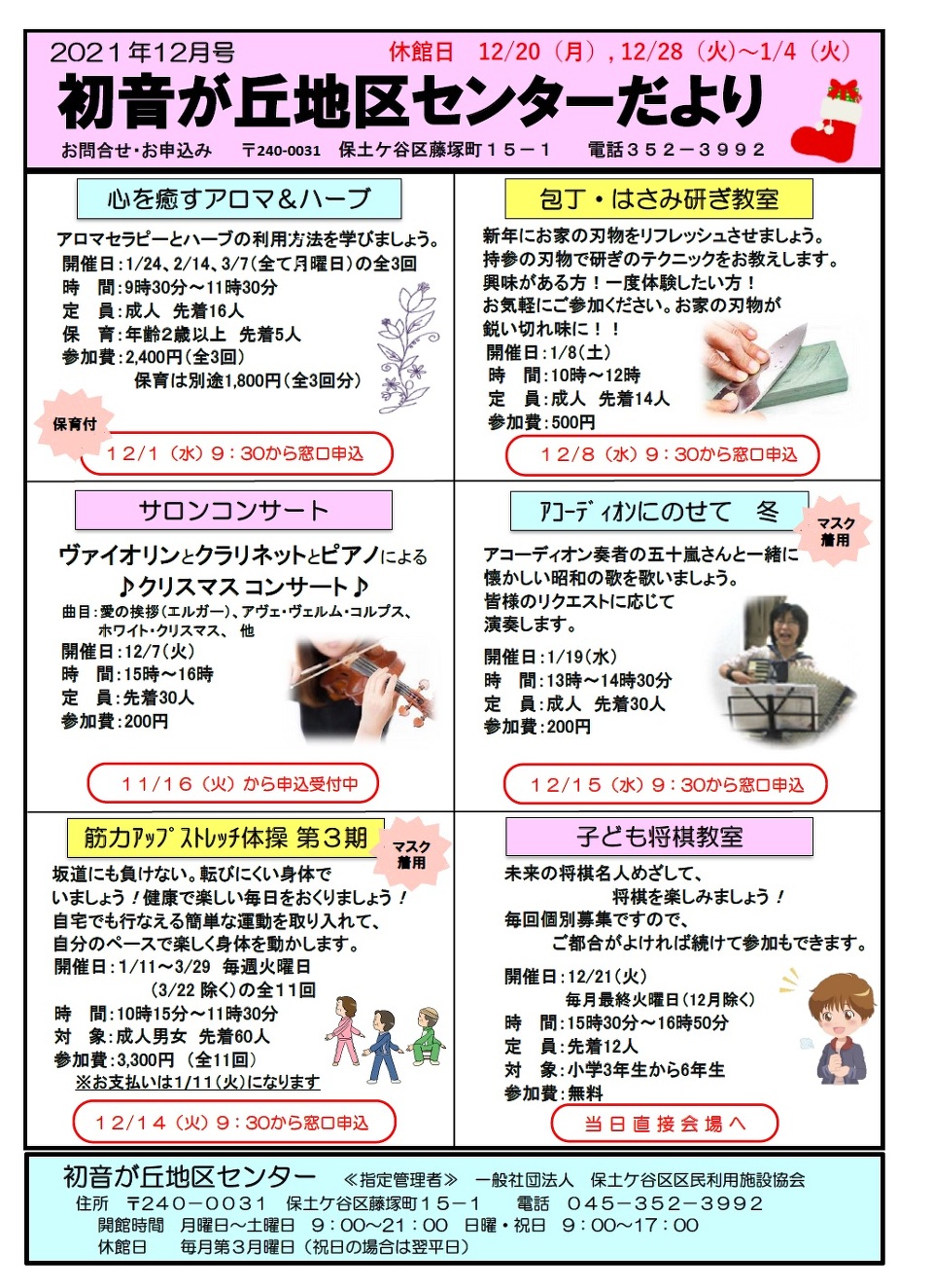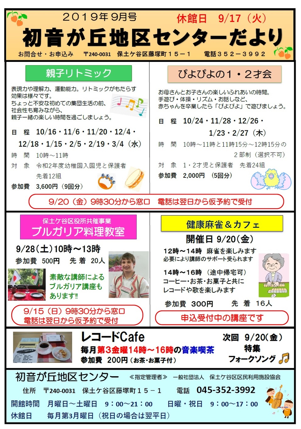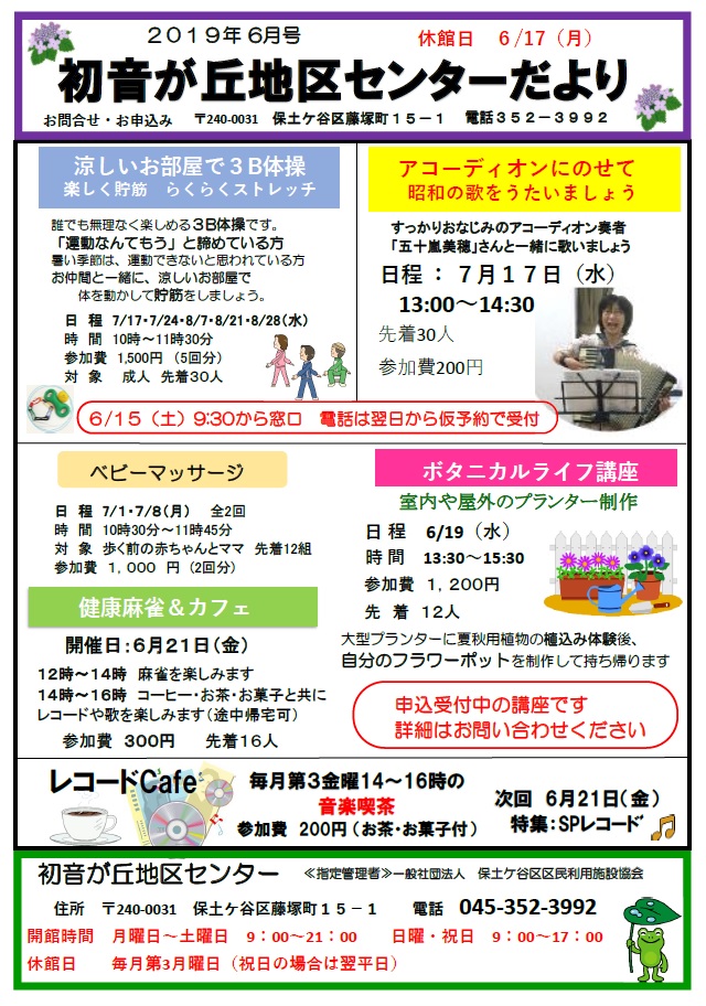 Copyright(C) 初音が丘地区センター All Rights Reserved.