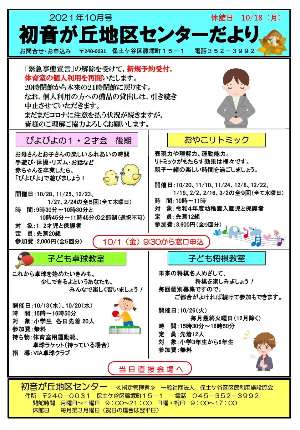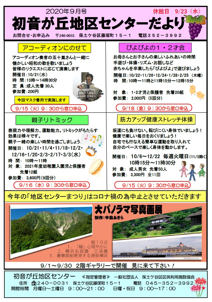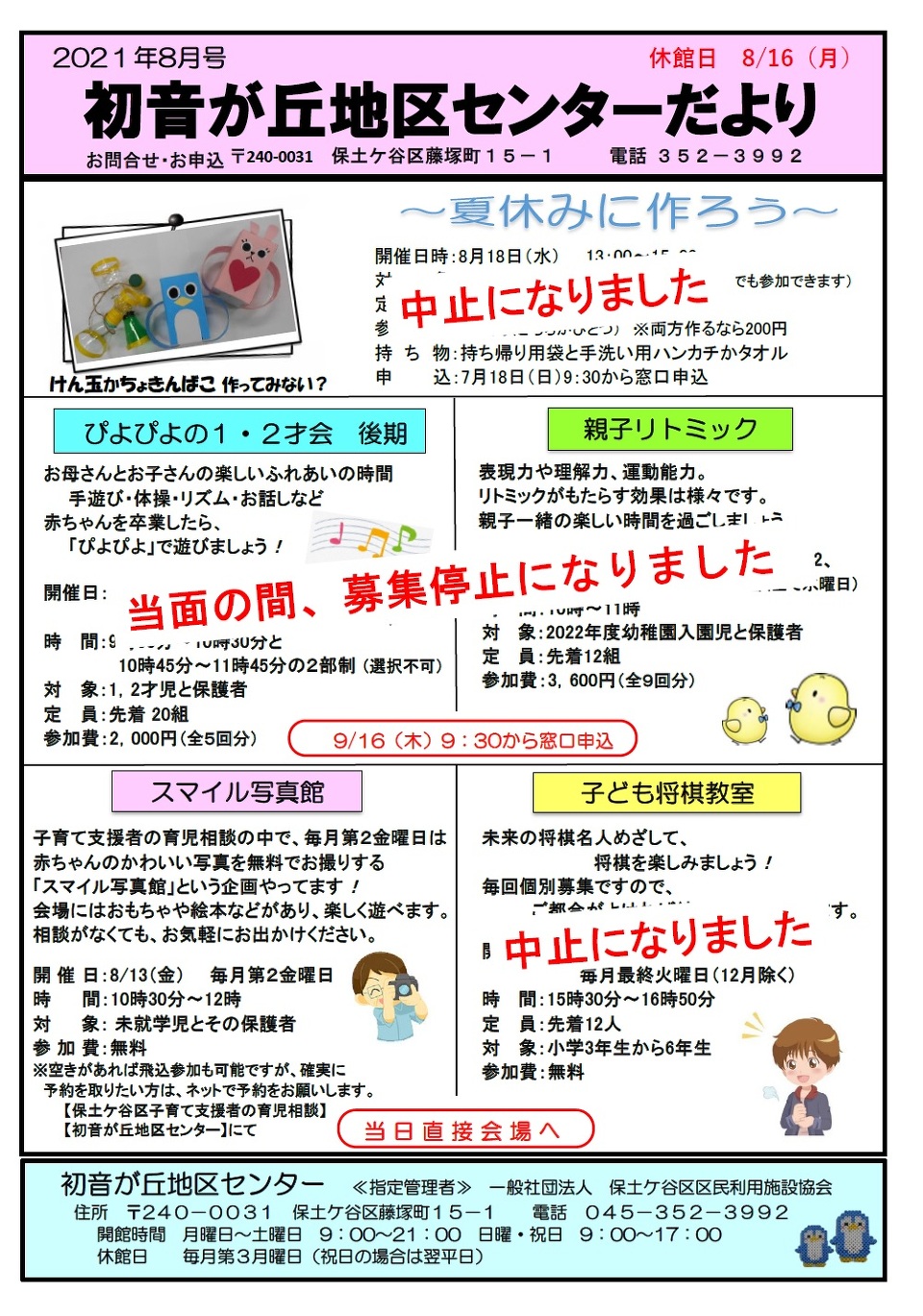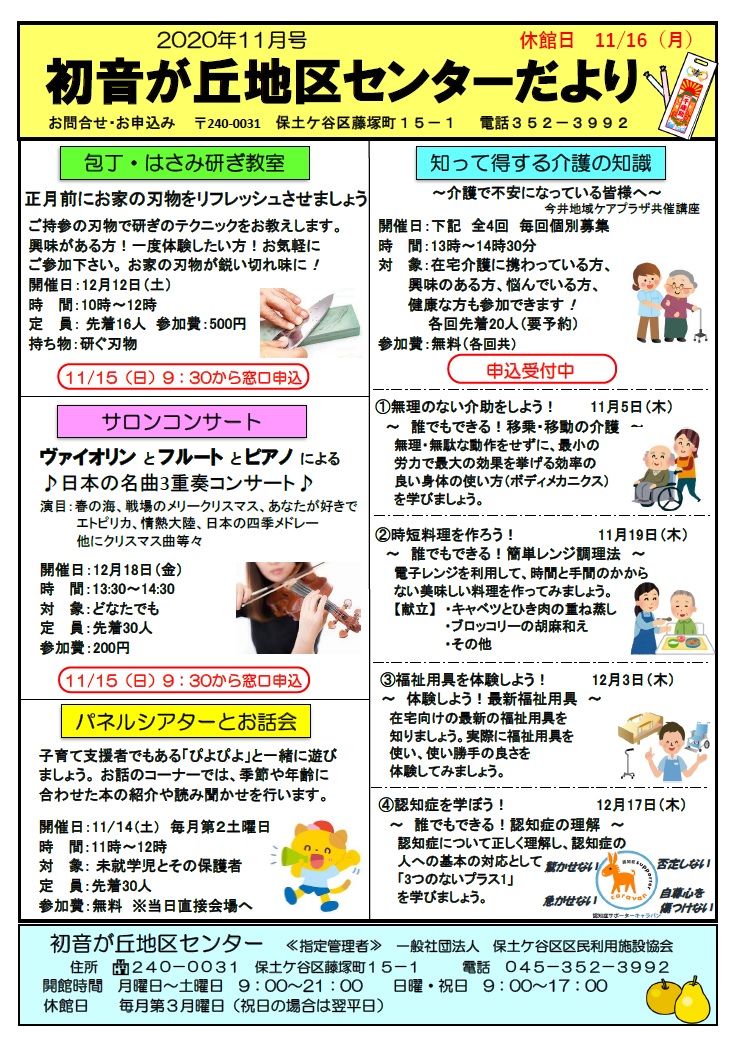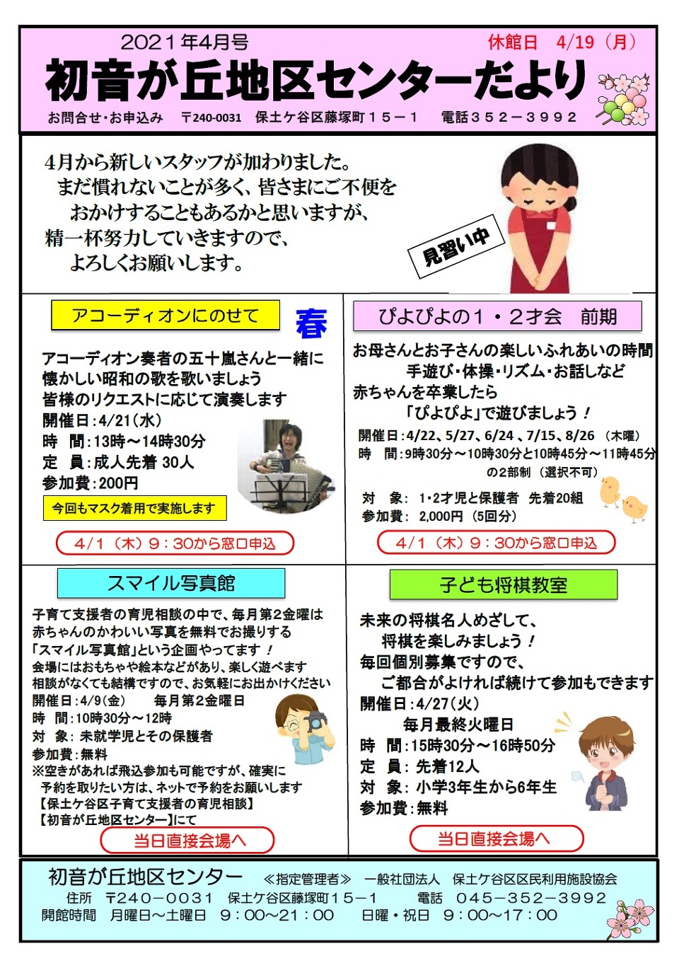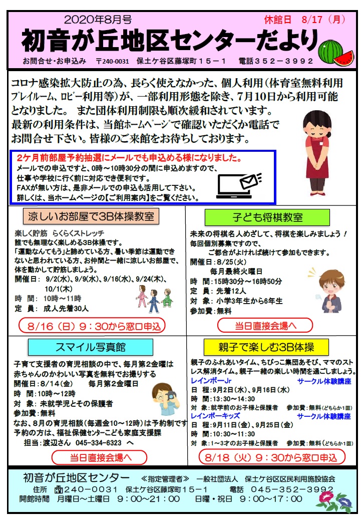 Copyright(C) 初音が丘地区センター All Rights Reserved.