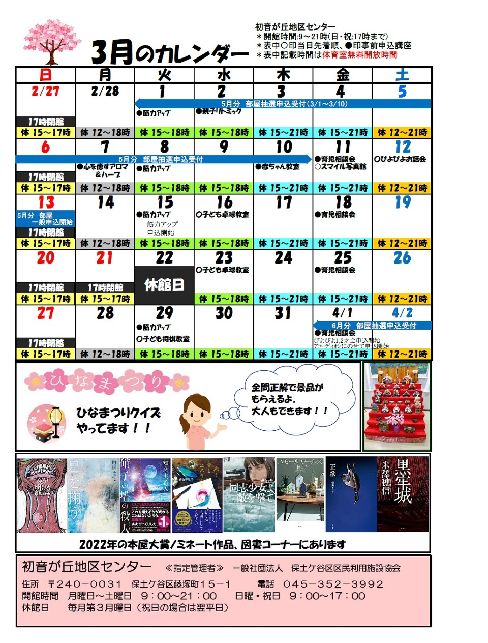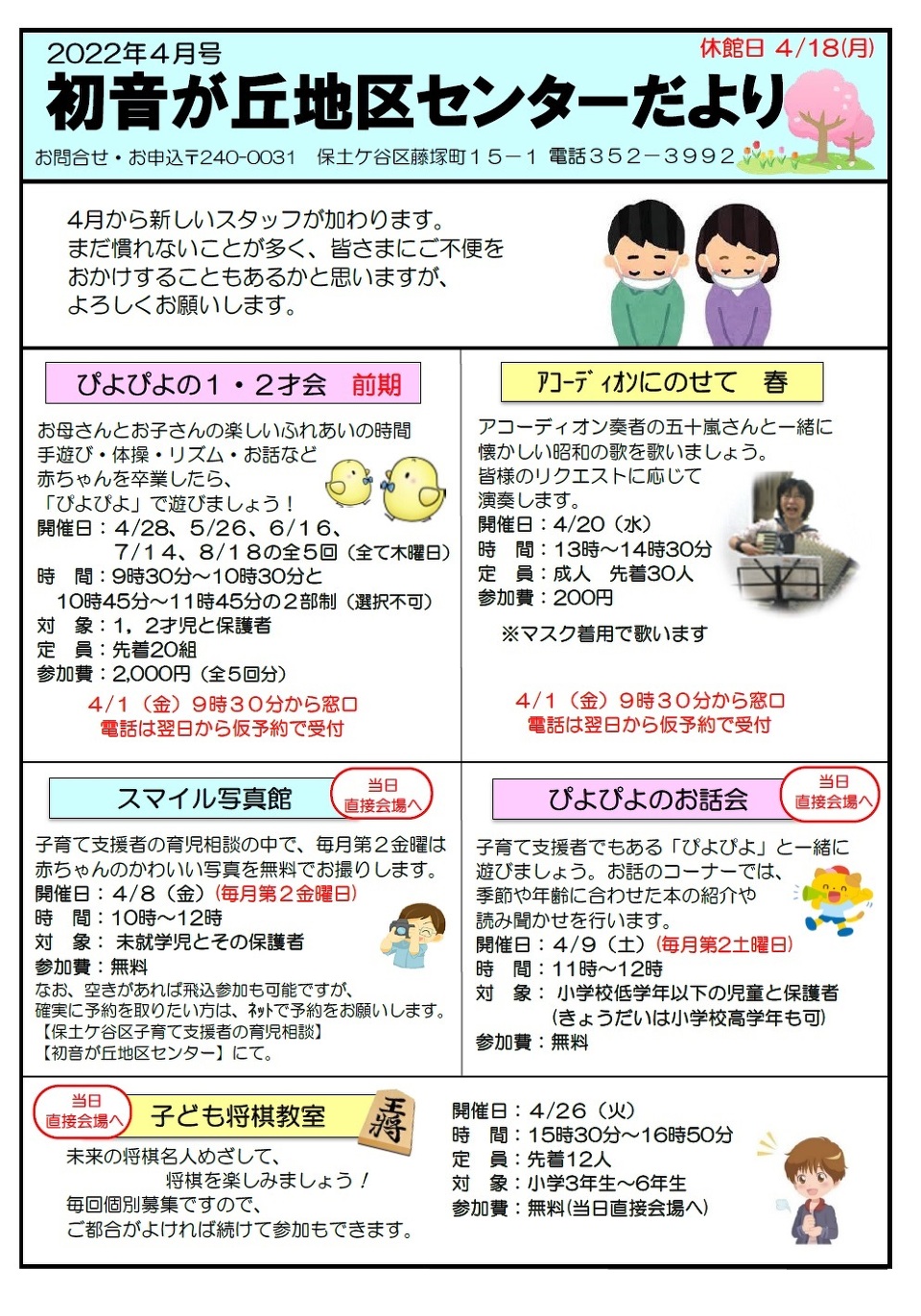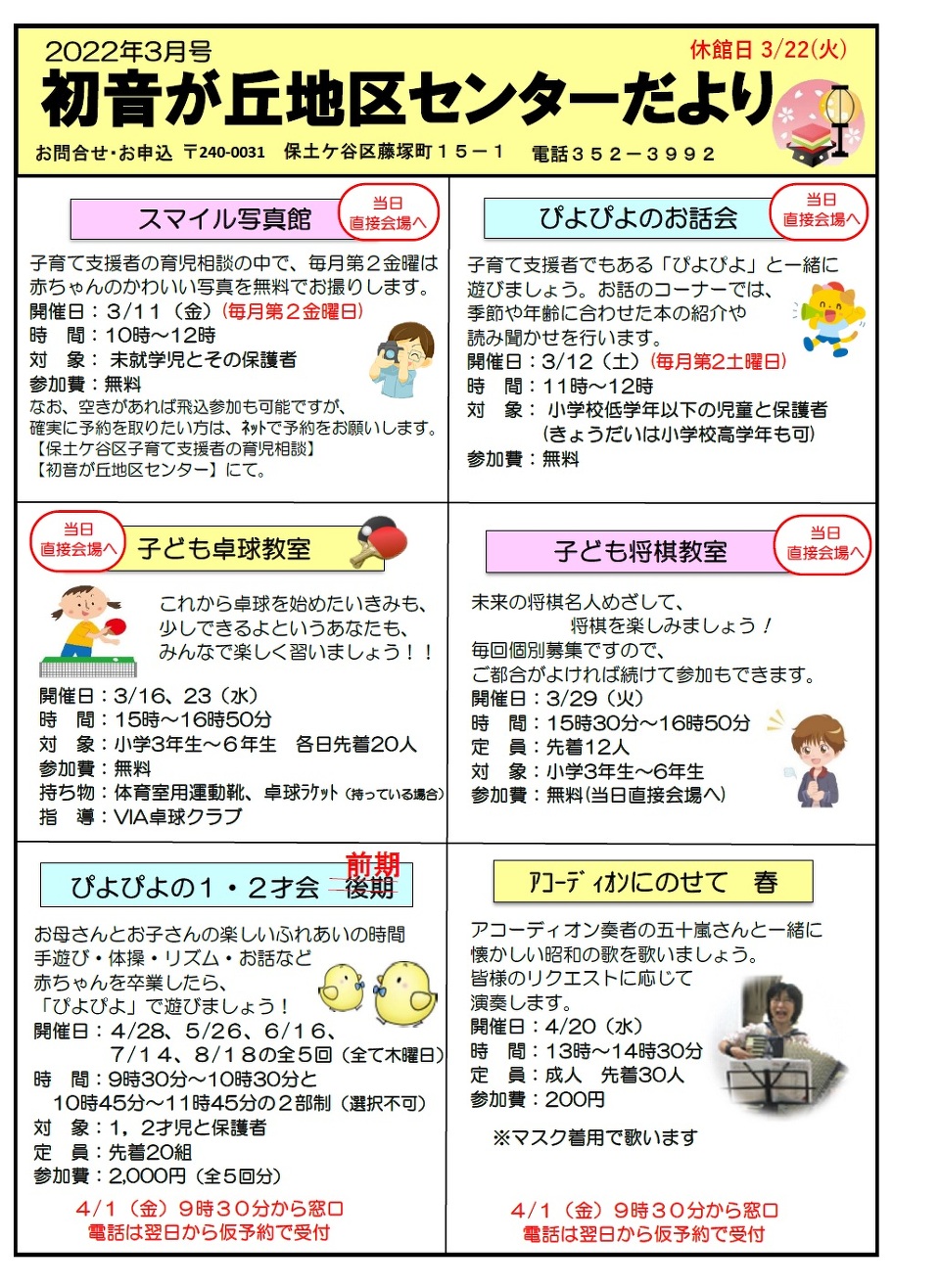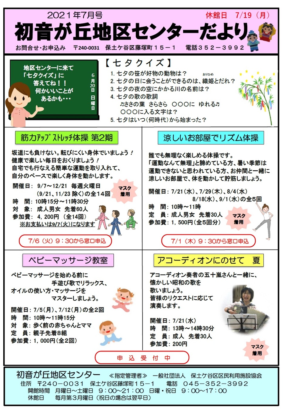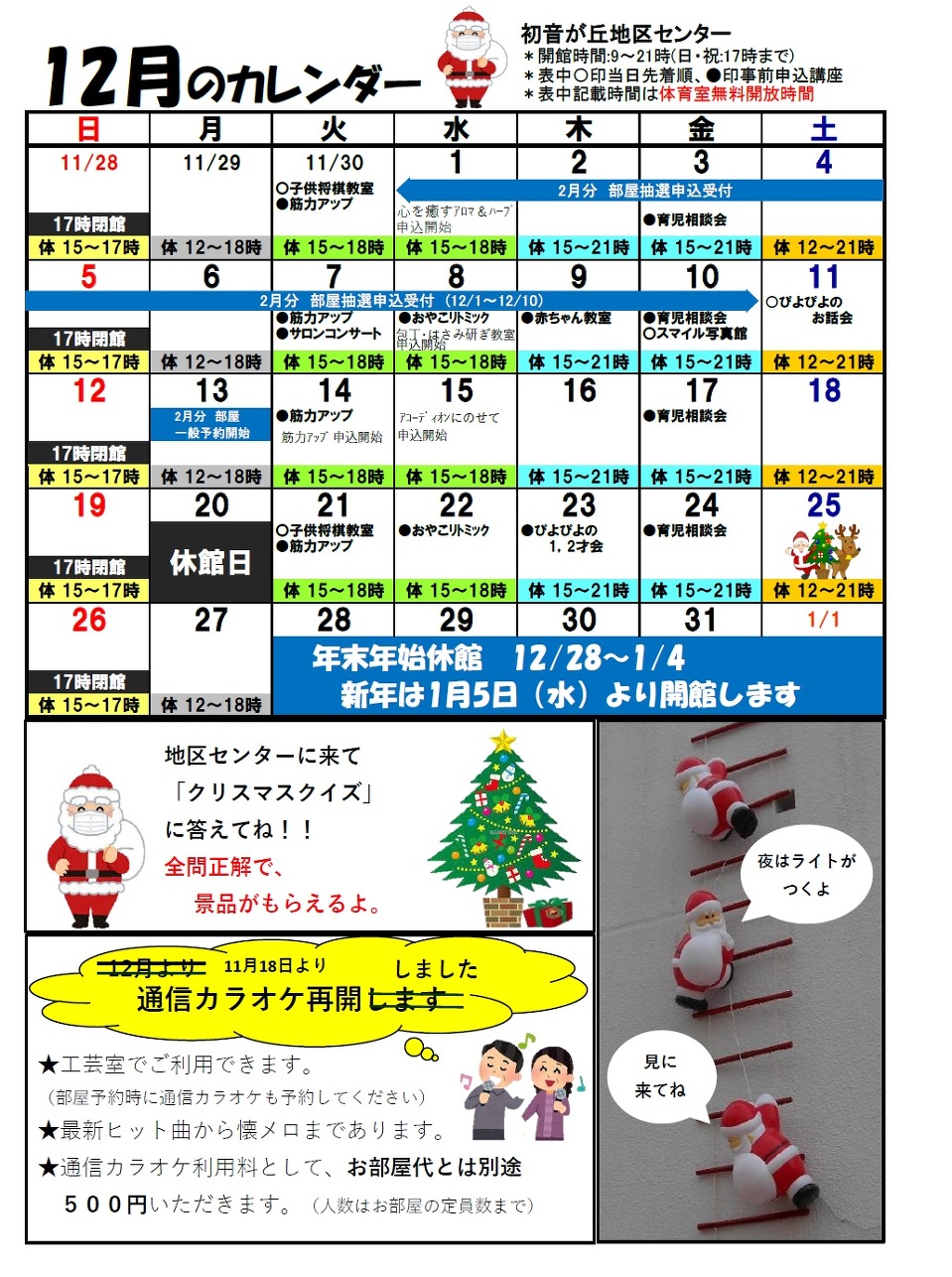 Copyright(C) 初音が丘地区センター All Rights Reserved.